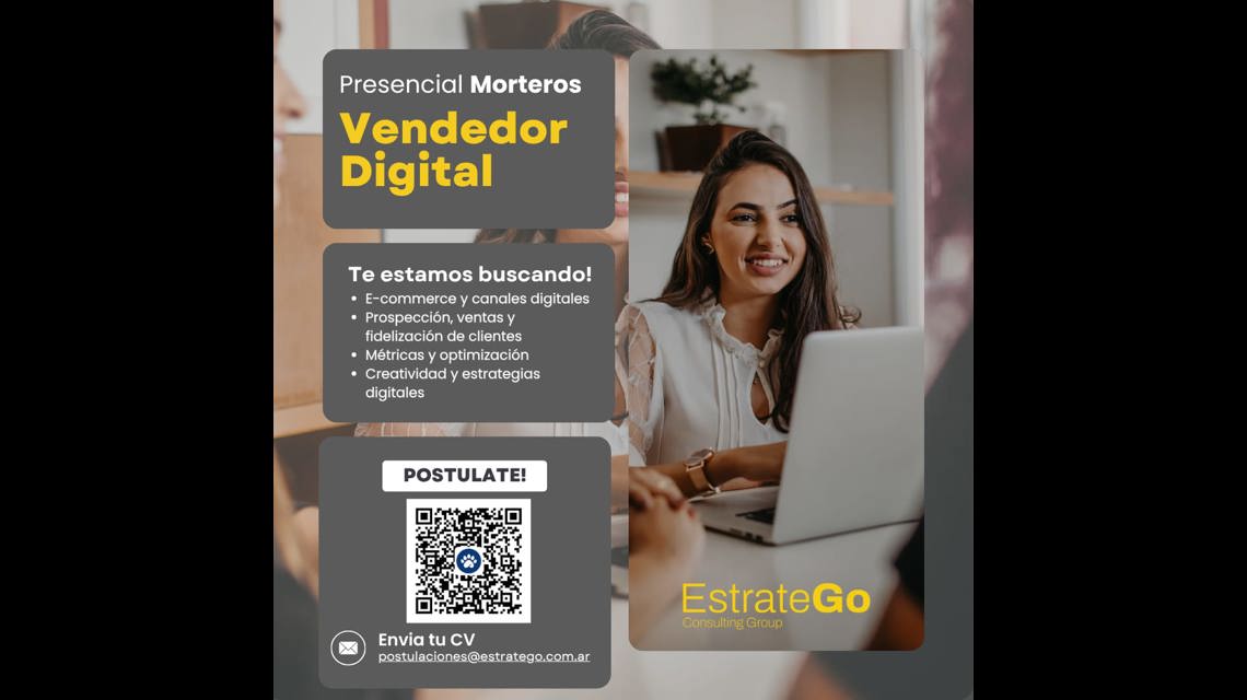 Somos un equipo que acompaña a las empresas a evolucionar, para ello te estamos buscando, para potenciar tu experiencia como asesor en venta digital y fidelización de clientes y desarrollar cada canal apostando a tu futuro y el de la empresa. Se requiere una persona con marcada visión comercial, que pueda alinearse con la agencia de marketing y lograr sinergia, con la capacidad de delinear este nuevo puesto a la medida de los clientes y la proyección de la empresa. Buscamos creatividad, rápida respuesta, autonomía y afinidad con el trabajo por objetivos, ya que esto sostendrá su crecimiento. ¡ES UNA GRAN OPORTUNIDAD!