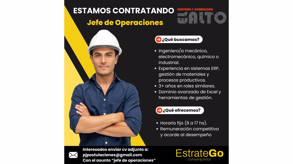 Somos un equipo que acompaña a las empresas a evolucionar, y te estamos buscando, para acompañar a Canteras El Alto, a dar el salto. Buscamos un profesional que pueda poner toda su experiencia como líder de producción a prueba, guiando a los supervisores en cada objetivo y en constante coordinación con Logística, Comercialización y Administración.. Será necesario que pueda tener una comprensión profunda del negocio, involucrándose tanto en cuestiones estratégicas como operativas. Será vital que proyecte su crecimiento profesional a la par del desarrollo y la ejecución del plan estratégico enfocado en maximizar todo el potencial de la empresa, y en ejercer el control en todas las operaciones de la empresa vinculadas a áridos y hormigón. Valoramos un perfil dinámico, con capacidad de gestión, que pueda ser el referente en un ambiente familiar.